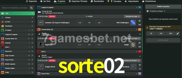 O sorte02 oferece uma grande seleção de opções de apostas em e-sports com probabilidades competitivas